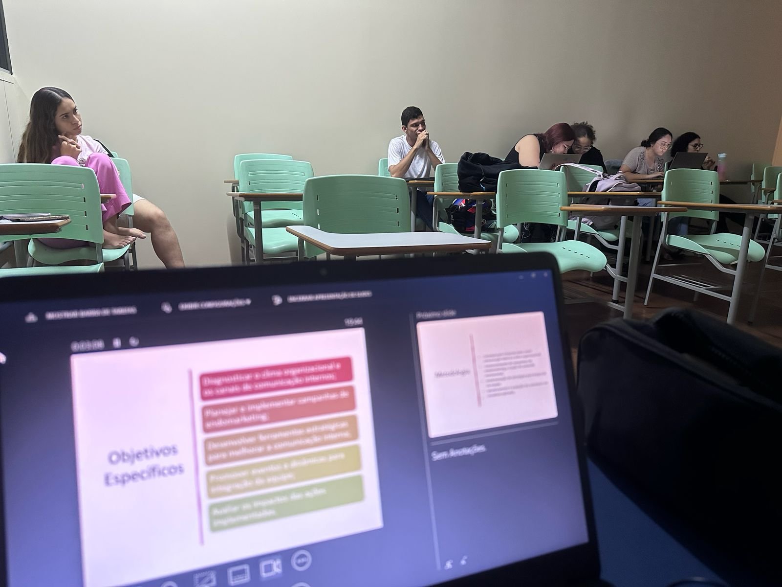 Veterana do sétimo semestre, a discente Bárbara Azevedo compartilhou com turma suas experiências no programa de estágio realizado junto à área pedagógica e a coordenação de curso de CineMídias.