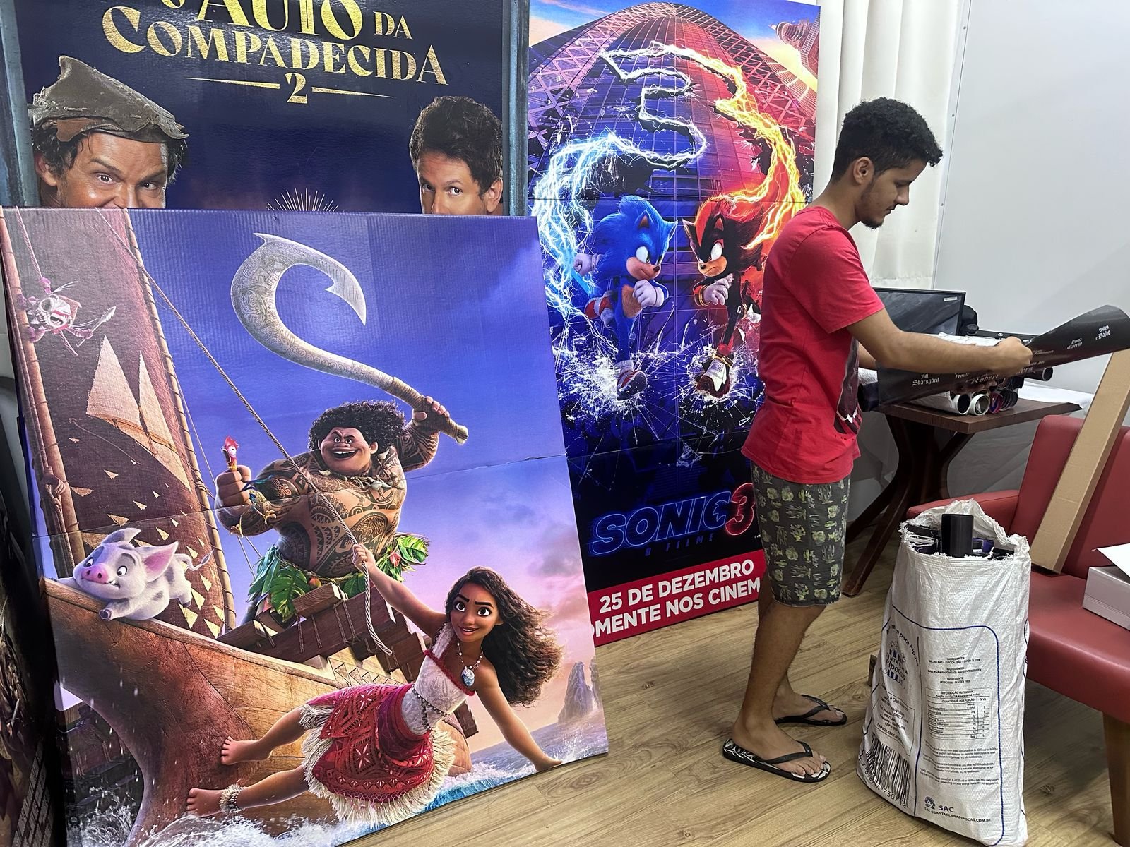 Somos muito gratos ao Moviecom de Sinop por essa parceria. Graças a ela, temos condição de preparar nossas salas de aula como se fossem espaços temáticos de cinema, contando com os cartazes e os displays de divulgação de filmes. Como um espaço pedagógico, esses materiais são usados também como possibilidades de ensino e aprendizagem pelos nossos professores, pois, por exemplo, em peças assim é possível trabalhar com aspectos desde as teorias da publicidade, a estratégia de campanha dos filmes, análise da imagem, semiótica, entre outros itinerários que se ligam à nossa prática formativa.
