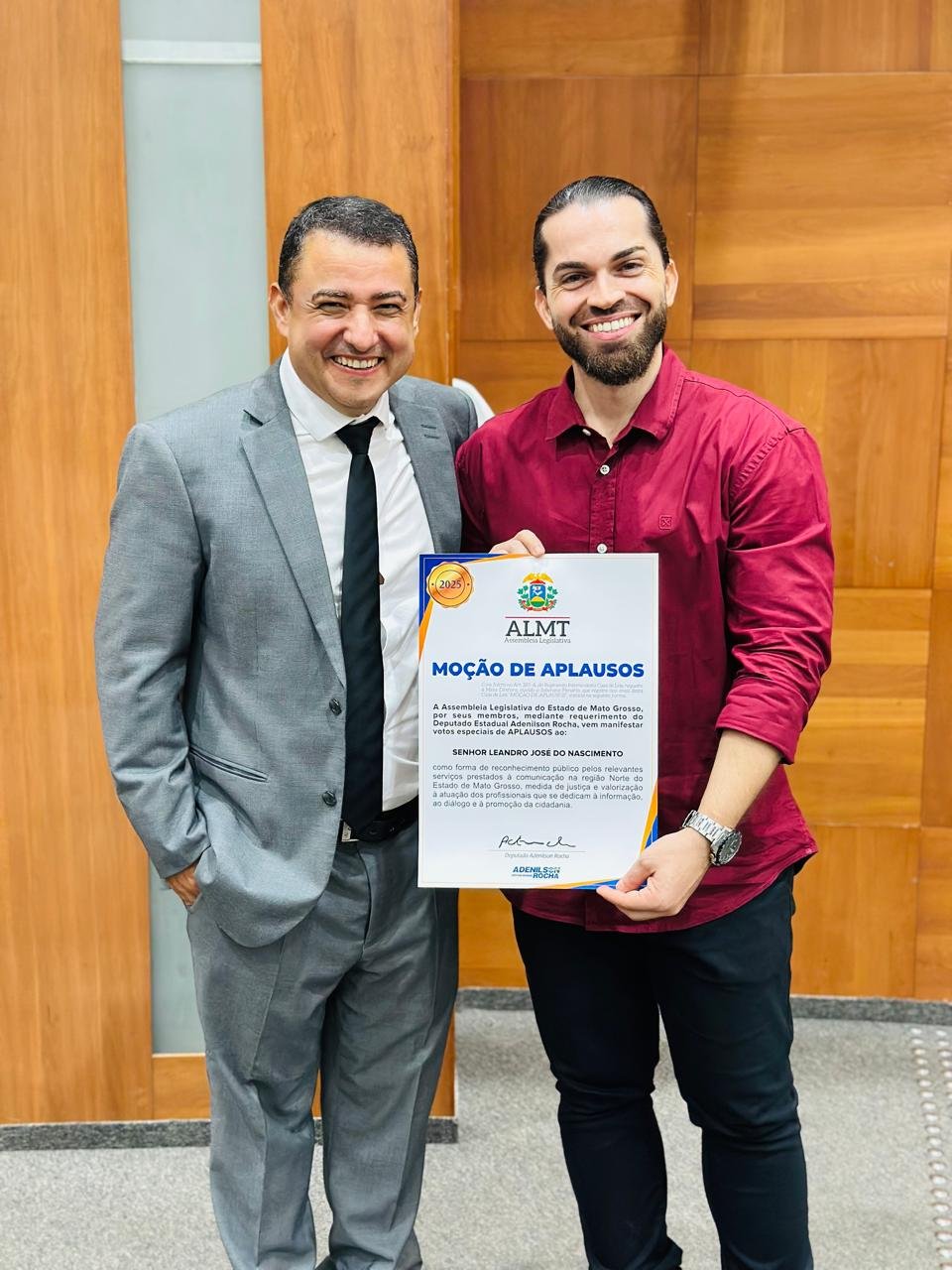 O coordenador do curso de Comunicação Social – Cinema e Mídias Digitais da Faculdade FASTECH, professor Dr. Leandro José do Nascimento, recebeu uma Moção de Aplauso concedida pela Assembleia Legislativa do Estado de Mato Grosso, por iniciativa do deputado estadual Adenilson Rocha. A homenagem reconheceu os relevantes serviços prestados à área da comunicação na região norte do Estado, durante solenidade especial realizada na capital Cuiabá, em 16 de outubro.